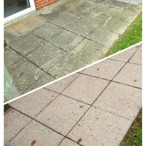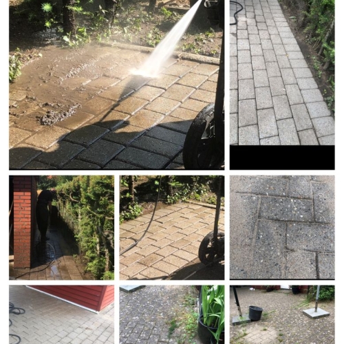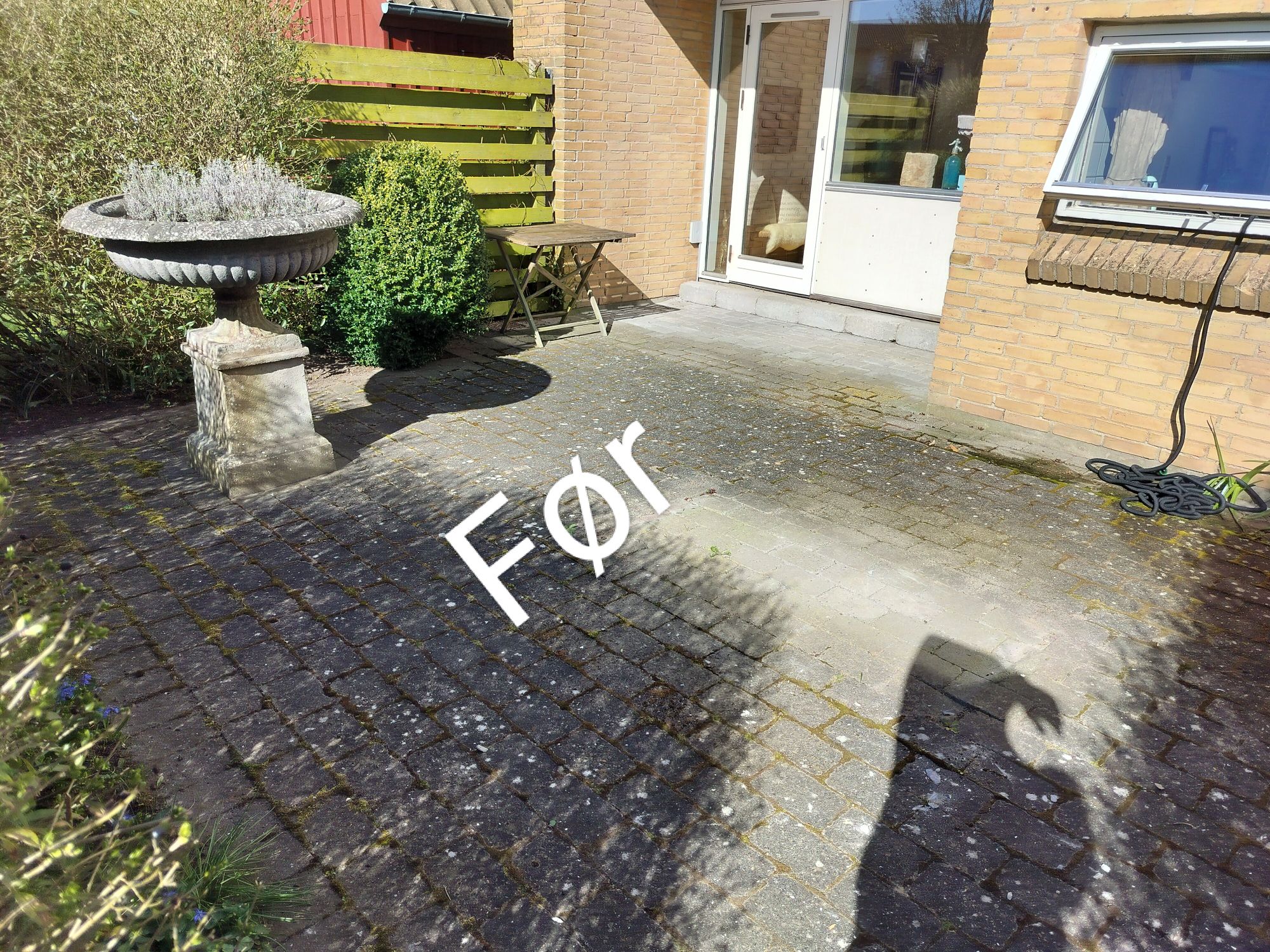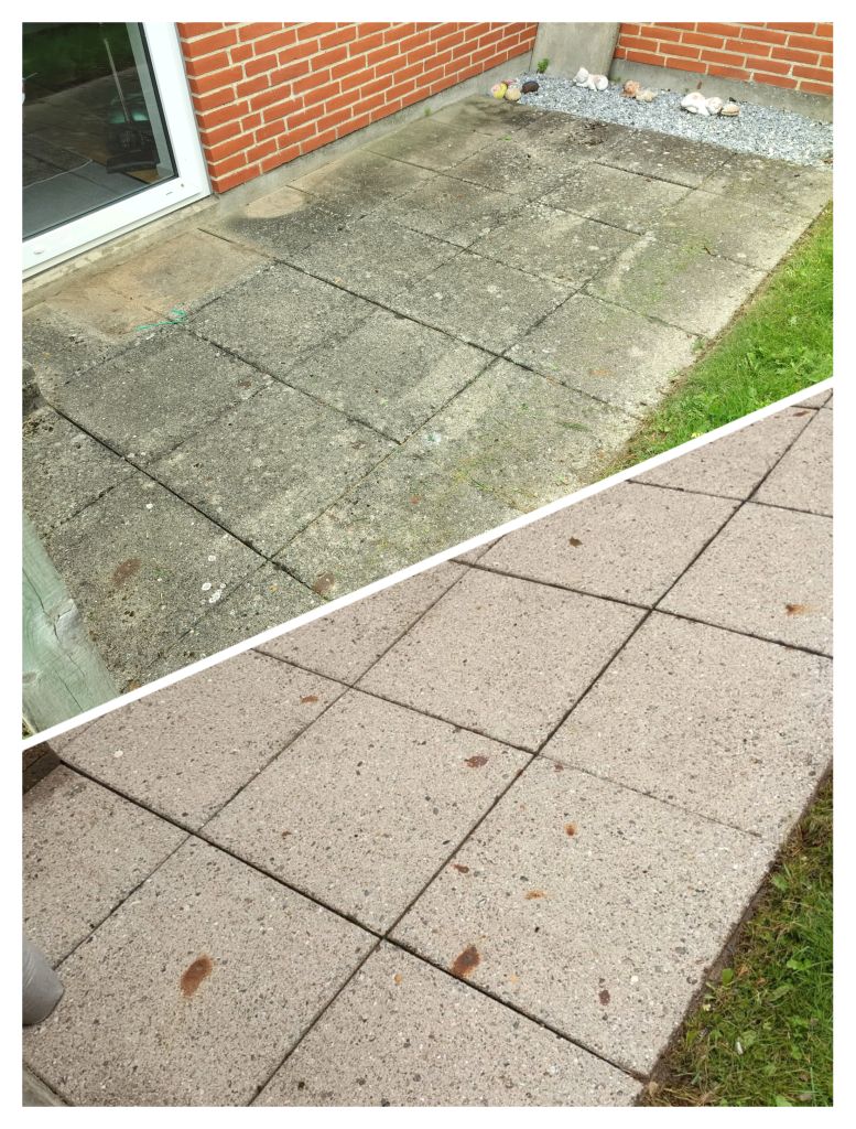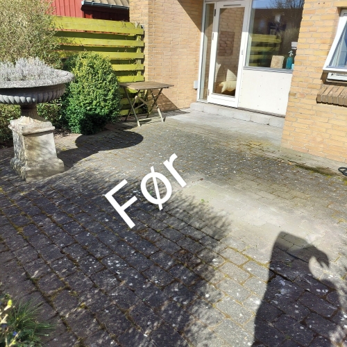 Rens af fliser samt træterrasse